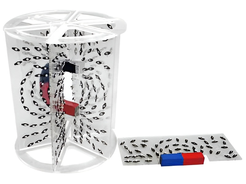 Модель представляет собой дискретный цилиндр с шестью диаметрально и равномерно расположенными пластинами, одна из которых сменная. Модель выполнена из прозрачной пластмассы. На пластинах установлено множество легкоподвижных ферромагнитных стрелок. Одна из сменных пластин имеет дугообразный вырез для установки в модель U-образного магнита.