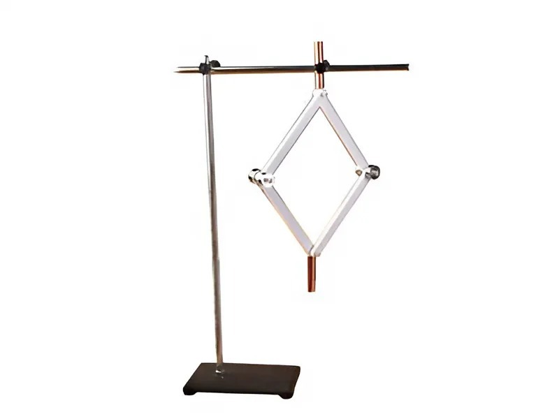 Прибор представляет собой ромб с грузами на шарнирах. Для проведения демонстрации необходим штатив.