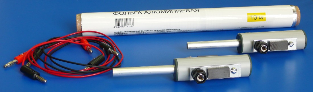 Изделие состоит из пары коммутирующих модулей, соединительных проводов и рулона алюминиевой фольги.