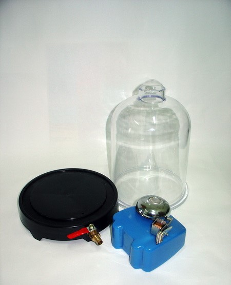 Для демонстрации опытов в комплекте с тарелкой вакуумной со звонком может использоваться насос вакуумный Комовского. Перед началом демонстрации смазать на тарелке, тонким слоем прорезиненную вставку, вставить батарейки (в комплектацию не входят) в отсек электрического звонка. Включить звонок, поставить его на тарелку и закрыть колоколом. Обратить внимание на хорошую слышимость звонка под колоколом. Соединить шлангом кран тарелки с вакуумным насосом, открыть кран и начать откачивать воздух из полости колокола. Обратить внимание, что по мере выкачивания воздуха из-под колокола звучание звонка становится тише и тише и наконец, почти совсем прекращается. Закрыв кран, снять шланг и снова открыть кран. Громкое звучание звонка восстанавливается.