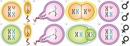 У особей мужского пола все четыре гаплоидные клетки, образовавшиеся в результате мейоза, преобразуются в сперматозоиды.