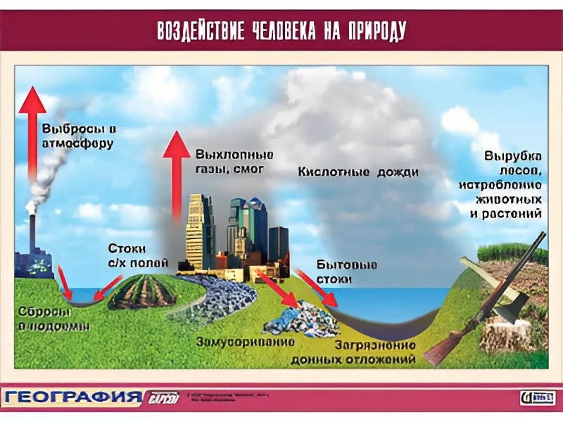 Таблица демонстрационная "Воздействие человека на природу" (винил 100*140) - fgospostavki.ru - Киров