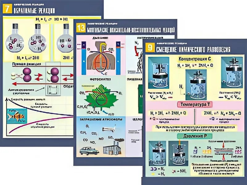 Комплект таблиц по химии демонстрационных "Химические реакции" (14 таблиц, формат А1, ламинированные)