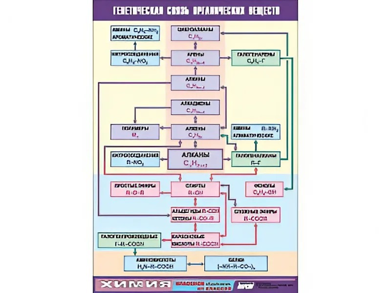 Таблица демонстрационная "Генетическая связь органических веществ"