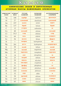 Таблица "Химические знаки и округленные атомные массы важнейших элементов"