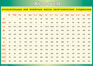 Таблица "Относительные или молярные массы неорганических соединений"  (100х140 сантиметров, винил) - fgospostavki.ru - Киров