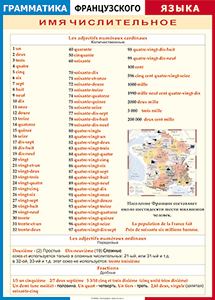 Таблица "Грамматика французского языка. Имя числительное (количественные, порядковые, дробные)" (100х140 сантиметров, винил)