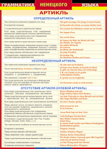 Таблица "Грамматика немецкого языка. Артикль" (100х140 сантиметров, винил) - fgospostavki.ru - Киров