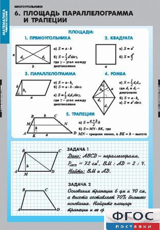 • Площадь параллелограмма и трапеции.