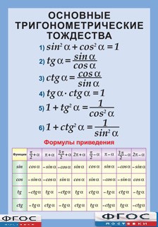 Таблица "Основные тригонометрические тождества. Формулы приведения" (винил) - fgospostavki.ru - Киров