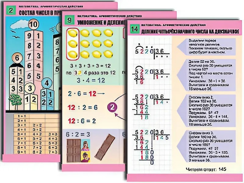 Главная Каталог Демонстрационные учебно-наглядные пособия Кабинет начальной школы Комплект таблиц "Математика. Арифметические действия" (14 таблиц, формат А1, ламинированные)