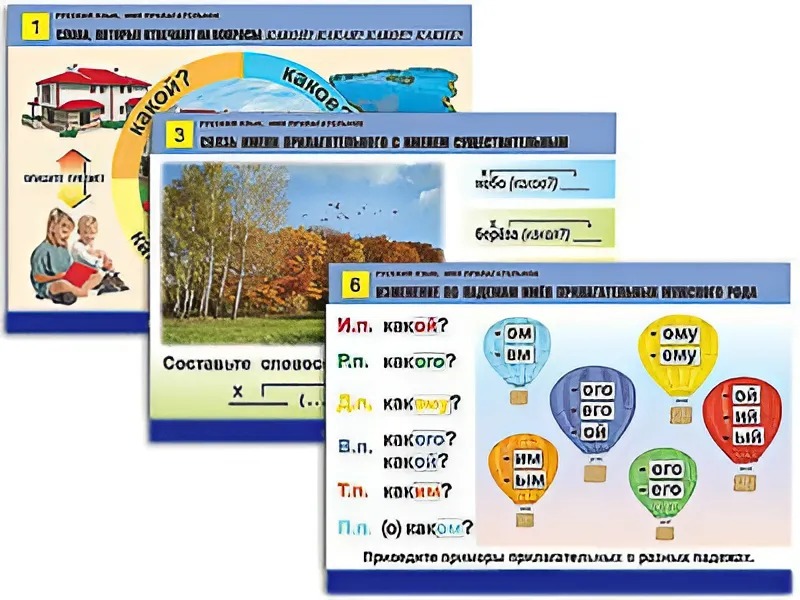 Комплект таблиц "Русский язык. Имя прилагательное" (12 таблиц, формат А1, ламинированные)