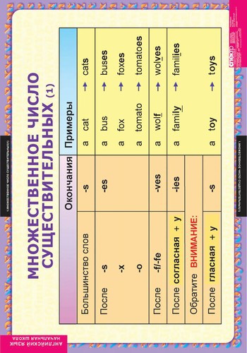 Главная Каталог Демонстрационные учебно-наглядные пособия Кабинет начальной школы Комплект таблиц. Английский язык. Существительные. Прилагательные. Числительные.
