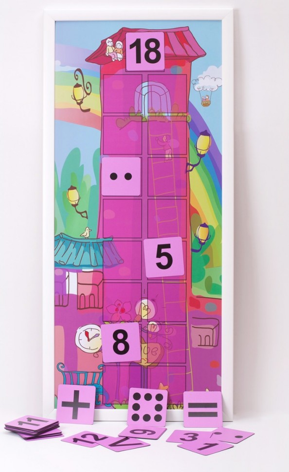 Среди карточек для магнитной доски “Город цифр” вы найдете не только цифры и знаки действий, но и точки. И состав числа можно изучать сначала с помощью точек, а потом уже с помощью цифр. Они помогут сделать первые шаги в изучении математики.