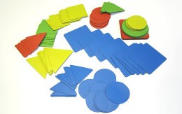 Набор магнитных карточек "Геометрические фигуры: изучаем форму, цвет, размер" (120 карточек, 4 цвета)