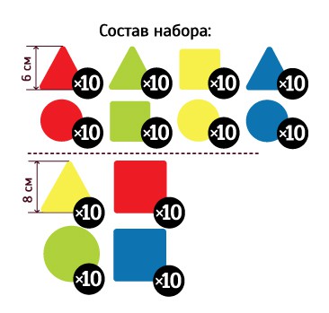 Главная Каталог Демонстрационные учебно-наглядные пособия Кабинет начальной школы Набор магнитных карточек "Геометрические фигуры: изучаем форму, цвет, размер" (120 карточек, 4 цвета)