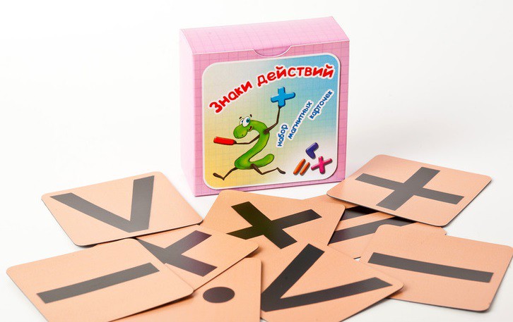Данный набор "Знаки действий" может быть использован с карточками с числами от 1 до 20 и круглыми числами.