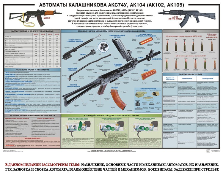 Главная Каталог Демонстрационные учебно-наглядные пособия Кабинет ОБЖ и НВП Плакат "Автоматы Калашникова АКС74У, АК104 (АК102, АК105)"