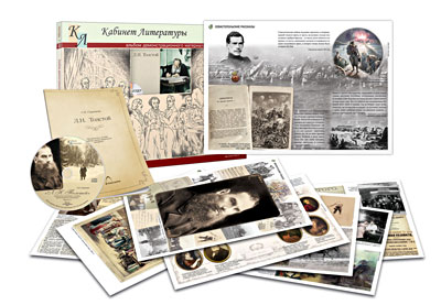 Печатные материалы включают художественно оформленные постеры c изобразительными и документальными материалами, организованными по хронологически-тематическому принципу. Содержание постеров является своеобразной опорой для изучения того или иного периода жизни и творчества писателя. Постеры могут быть использованы как для предъявления на уроках литературы при изучении творчества Л.Н. Толстого, так и для временного или постоянного оформления кабинетов литературы, а также проведения тематических школьных или классных мероприятий.