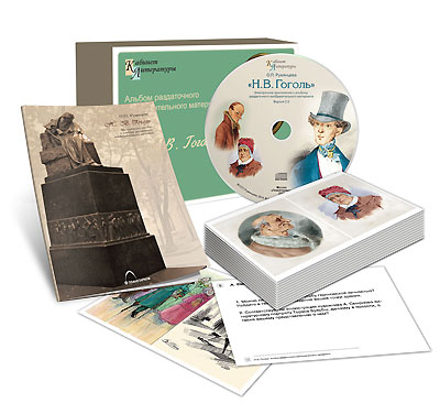 CD-диск пособия включает в себя текстовый и изобразительный материал, посвященный творчеству Н.В. Гоголя, иллюстрации к его произведениям («Тарас Бульба», «Вечера на хуторе близ Диканьки», «Мертвые души» и др.), выполненные разными художниками; вопросы и задания.