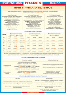 Таблица "Грамматика русского языка. Имя прилагательное" (100х140 сантиметров, винил)
