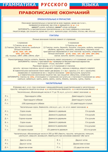 Таблица "Грамматика русского языка. Правописание окончаний прилагательных и причастий, глаголов, числительных" (100х140 сантиметров, винил)