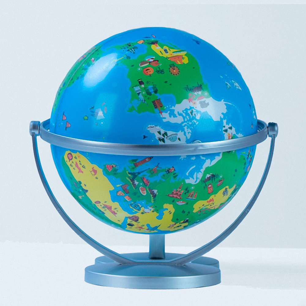 Это современная и умная версия глобуса, дополненная 3D объектами, которые ребенок сможет увидеть, направив на него камеру умного устройства.