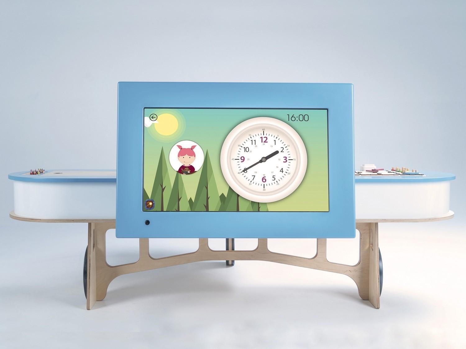 На игровой панели установлено ПО «Дошкольное образование», включающее более 80 обучающих игр и 110 тестов, направленных на развитие памяти, внимания, логики, на изучение счета и английского языка. Прохождение всех игр гарантирует появление у ребенка базового представления об окружающем его мире. Присутствует функция разделения интерактивного экрана на 2 игровых сектора, что делает возможным задействовать как можно больше детей для групповой работы.