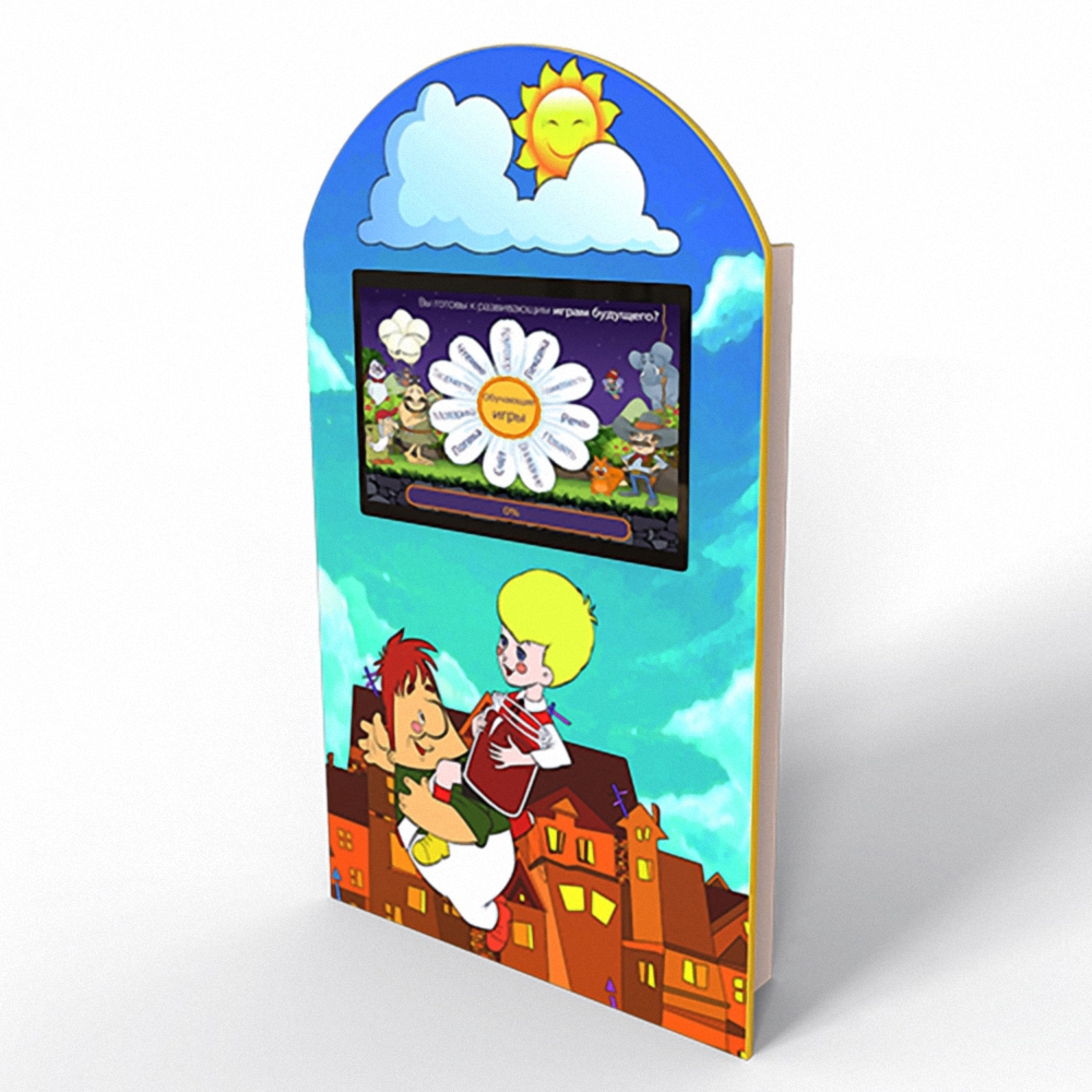 Навесная конструкция корпуса отвечает за удобное размещение оборудования в помещениях с небольшой площадью. Яркий дизайн делает комплекс элементом интерьера, привлекающим внимание детей. Работает на базе компьютера (Intel Celeron 1.6 GHz, ОЗУ 4Gb DDR4-2133, SSD-120Gb) с вмонтированным в корпус сенсорным 24 дюймовым экраном, поддерживающим до 10 одновременных касаний.