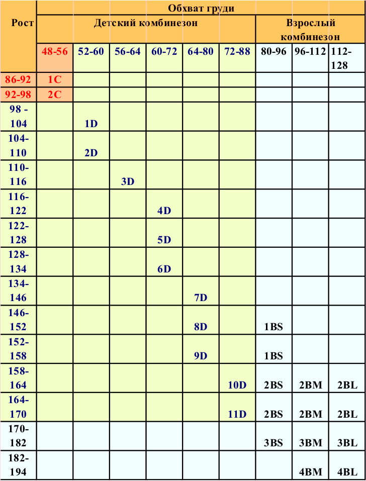 Показания к применению костюма: