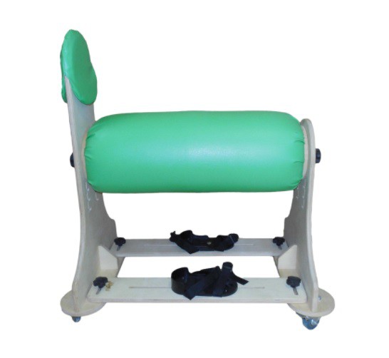 Сидение опоры выполнено в виде абдукционного валика, регулируемого по высоте и углу наклона. Валик крепится к двум вертикальным стойкам при помощи винтов-барашков с пластиковой рукояткой. Вертикальные стойки оборудованы самоориентирующимися колесами со стояночным тормозом. Одна из вертикальных стоек оборудована съемной подушкой для спины. На вертикальных стойках установлены съемные подножки для крепления стоп с возможностью независимой регулировки "влево-вправо". На съемных подножках располагаются съемные пластиковые крепления для ступней типа «сандалии», с задними упорами и крепежными ремешками. Крепления для ступней независимо друг от друга регулируются по плоскости подножки "вперед-назад" с возможностью закрепления в выбранном положении.