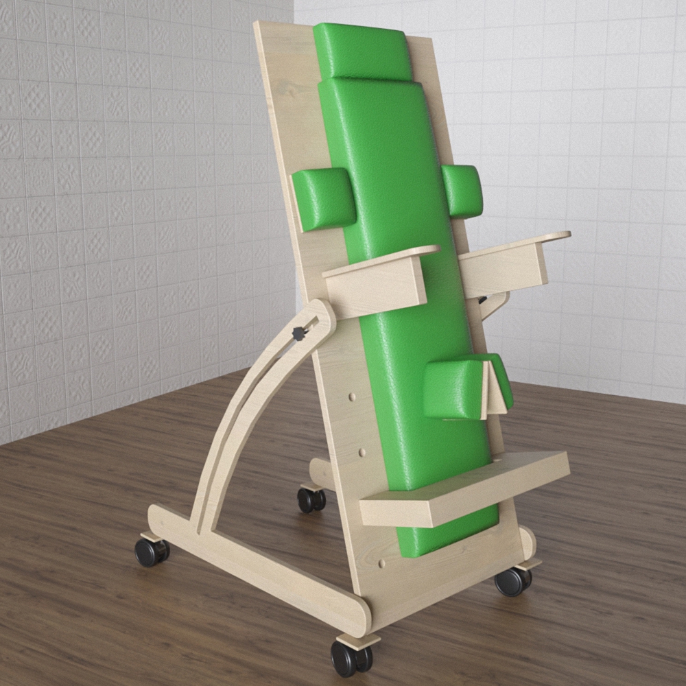 Предназначена для реабилитации детей, имеющих нарушения опорно-двигательного аппарата (не могут самостоятельно находиться в вертикальном положении). Стойка помогает организму ребенка с ОВЗ учиться сохранению равновесия в пространстве, постепенно адаптируясь к новому для него положению. Модуль оснащен деталями, необходимыми для частичной фиксации частей тела ребенка, что обеспечивает безопасность и исключает риск травматизма. Спинка расположена под небольшим наклоном назад для облегчения нагрузки на позвоночник.