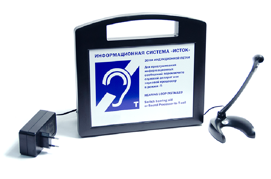 Система информационная переносная предназначена для передачи аудиоинформации лицам с нарушенной функцией слуха при повышенном уровне окружающего шума или при наличии преграды между собеседниками в общественных и многолюдных местах, в зонах обслуживания населения (возле стоек информации, кассах).