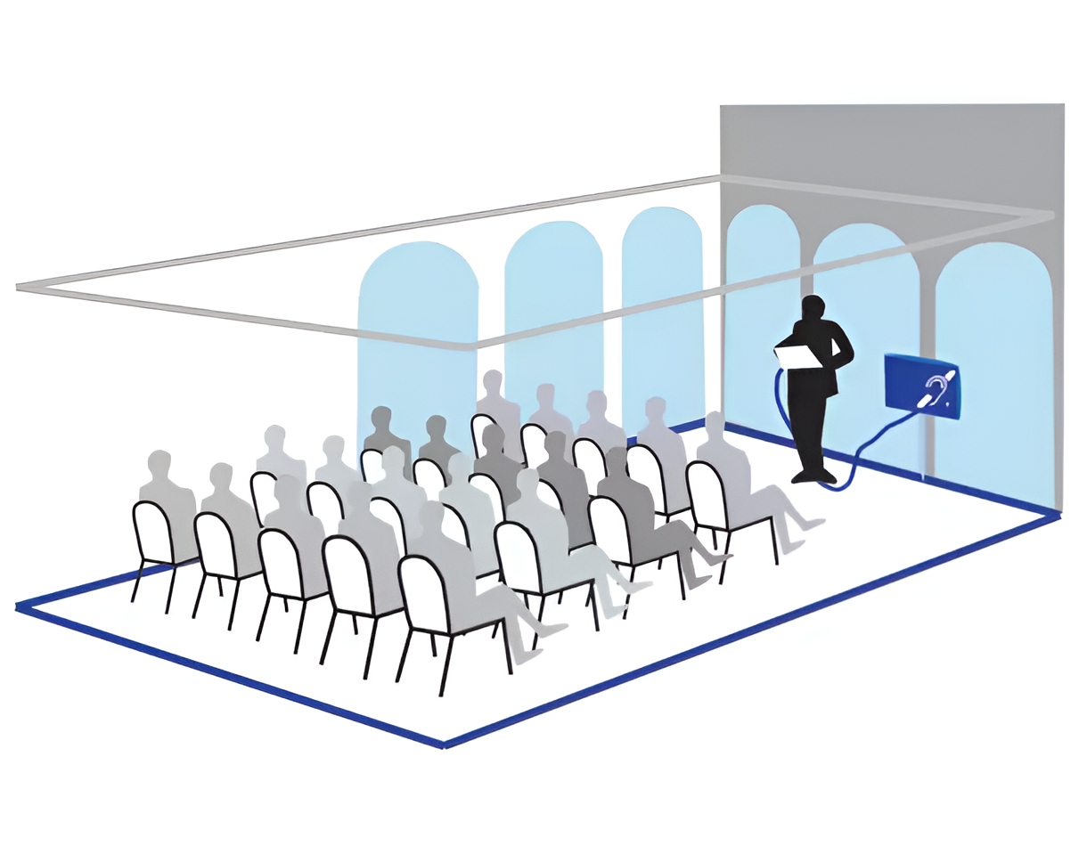 Монтируется особым образом в пол либо потолок помещения и коммутируется с усилителем, расположенным в непосредственной близости от индукционной петли.