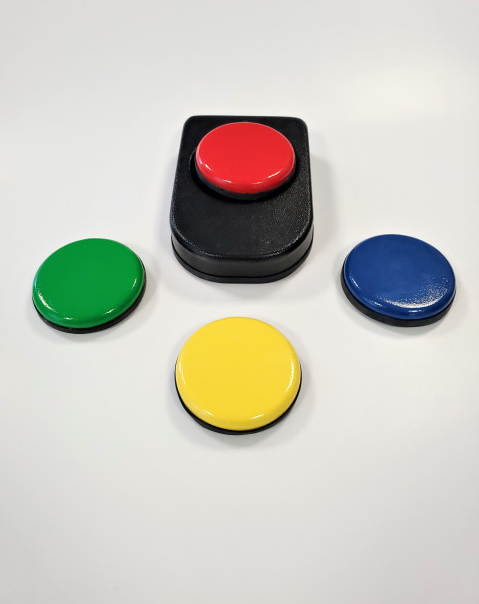 Кнопка-игровой коммуникатор предназначена для улучшения качества общения и коммуникации детей, имеющих проблемы со слуховым, зрительным, тактильным восприятием. Представляет собой компактный корпус с большой кнопкой, предназначенной для записи и воспроизведения сообщений.  Диаметр кнопки позволяет использовать представленное устройство незрячим людям, также хорошо подойдёт для тех, кто имеет нарушения опорно-двигательного аппарата и нуждаются в большой целевой площади. Устройство изготовлено из высококачественного ударопрочного пластика, имеет обтекаемые плавные формы без острых краёв и углов.