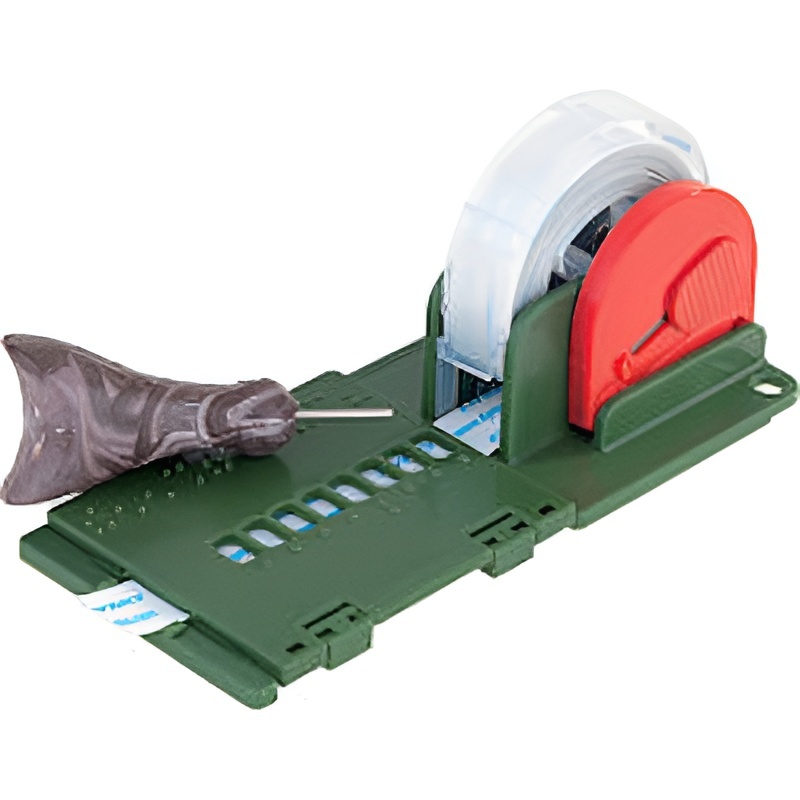 Небольшое устройство, удобное для хранения и транспортировки; имеющее современный дизайн и приятное на ощупь. Имеет две функции: подготовка Брайлевских ярлыков и выпуклых точек. Держатель для клейкой ленты остается в неподвижном положении: не нужно повторять необходимые манипуляции, мгновенный доступ к написанию и нанесению меток. Неизменное расстояние между знаками даже при написании более длинных слов. Универсальная система, посредством которой пользователи могут писать буквы в их собственной вариации шрифта Брайля. Позволяет также зрячим людям делать Брайлевские ярлыки, используя Брайлевский алфавит, прикрепленный к нижней части устройства. Легкое отделение защитной пленки от самоклеющейся ленты.