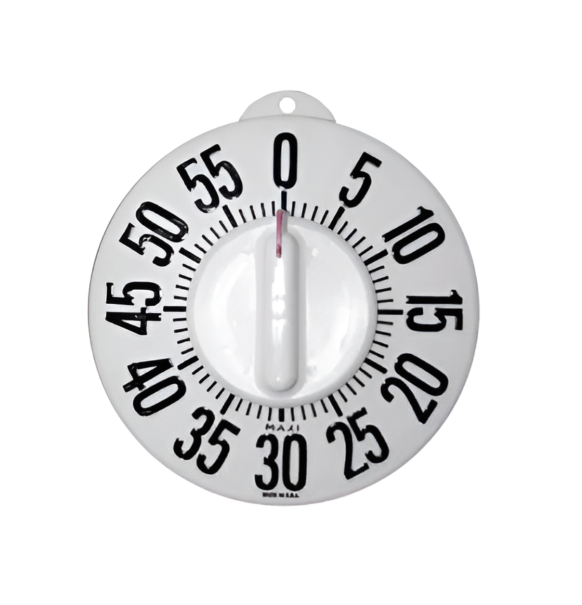 Таймер представляет собой тактильный циферблат белого цвета, на который нанесены крупные черные цифры.