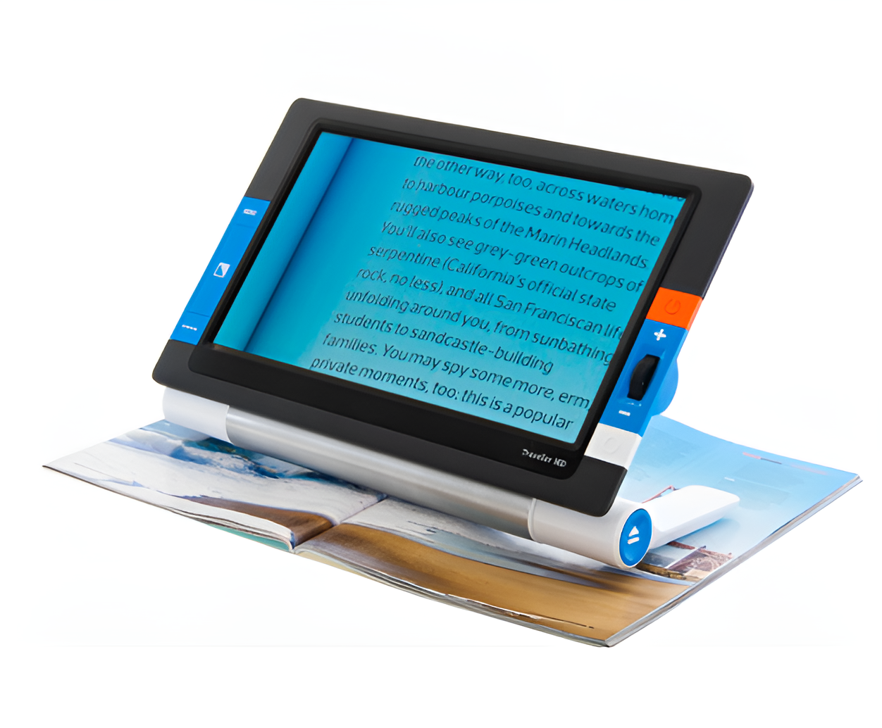 Видеоувеличитель позволит читать там, где это необходимо: на работе, дома, в школе или библиотеке. Кроме того, устройство оснащено уникальным механизмом перемещения и чтения Slide & Read, который предоставляет возможность более комфортного чтения, особенно для тех, кому тяжело удерживать руку в одном положении. Просто перемещайте устройство по строке текста и читайте содержимое на экране. Большой широкоформатный экран позволяет детально рассмотреть изображение или увидеть целую строку текста, что, в свою очередь, повышает скорость чтения. Наклонное положение экрана обеспечивает максимальный комфорт при чтении.