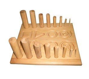 Панель из натурального дерева с вырезанными парными фигурами (квадрат, круг, треугольник и т.д.) и параллельно попарно расположенными отверстиями. Комплектуется двумя стилусами и парными колышками круглого сечения различной  высоты и диаметра (по 2 колышка каждого типоразмера).