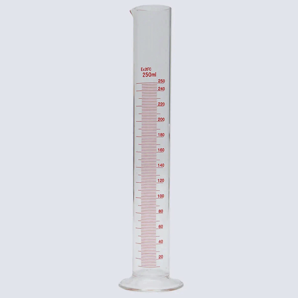 Измерительный цилиндр 250 мл. Цилиндр мерный лабораторный с носиком. Применяется для отмеривания определенного объема жидкости.