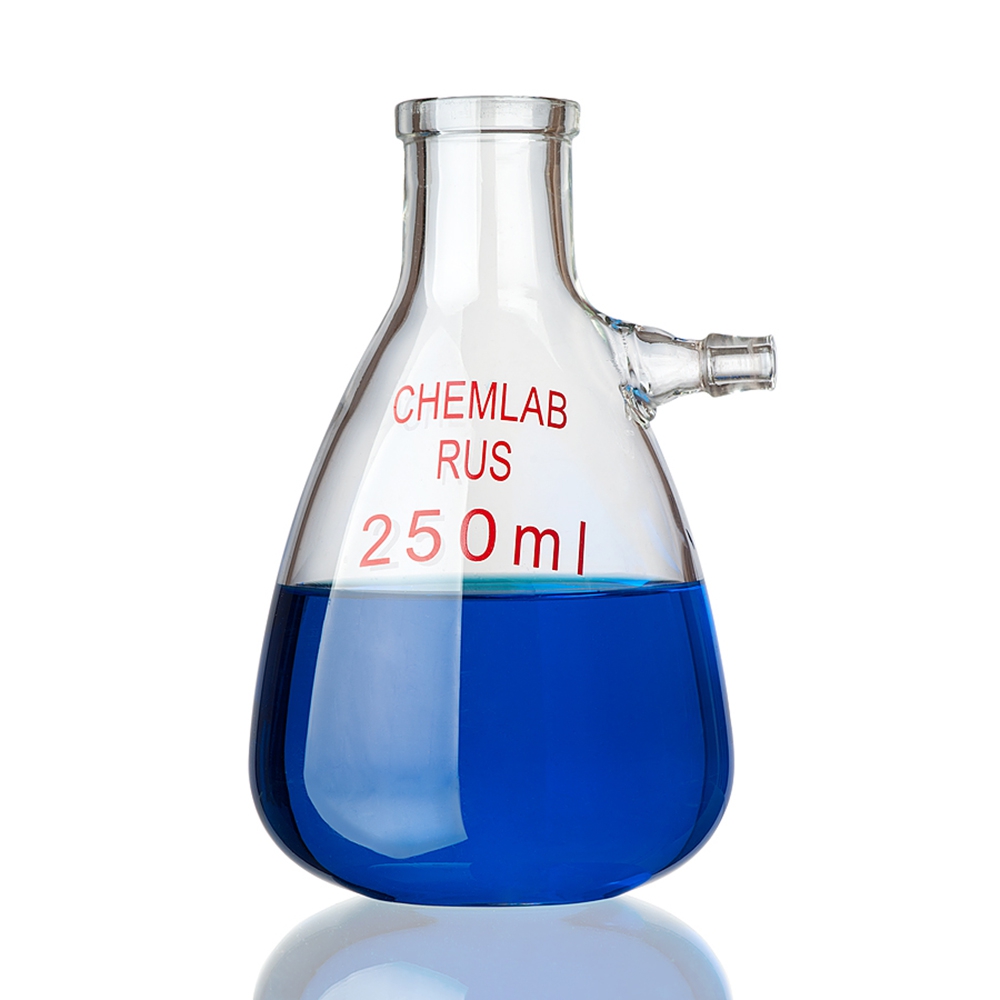 Колба Бунзена 250 мл с тубусом предназначена для фильтрования в вакууме в процессе выполнения лабораторных и демонстрационных опытов по химии.