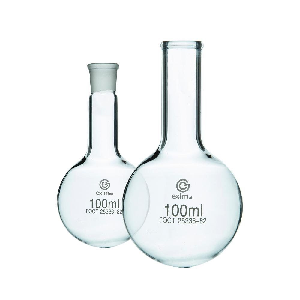 Колба круглодонная 100 мл предназначена для нагревания растворов в различных химических процессах, связанных с перегонкой веществ, в ходе выполнения лабораторных и демонстрационных опытов в рамках изучения курса химии.
