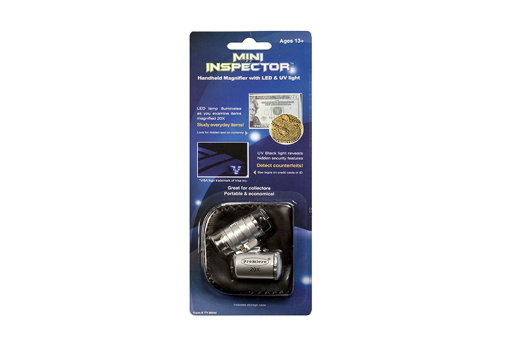 Карманный мини-микроскоп с 20-кратным увеличением, LED-подсветкой и ультрафиолетовой лампой. Вы сможете исследовать монеты, купюры, насекомых, ювелирные изделия, косметику и многое другое. УФ-лампа поможет проверить наличие или отсутствие невидимой защиты на купюрах, кредитных картах и водительских удостоверениях, а также провести опыты с различными бытовыми веществами.