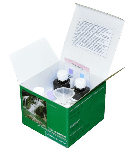 Тест-комплект максимально прост и удобен в использовании, позволяет при минимальных затратах осуществлять экспресс-определения массовой концентрации сульфатов в питьевой, природной и очищенной сточной воде