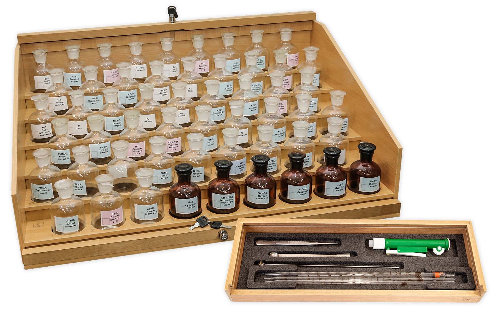 • Хранилище имеет прозрачную крышку  с запирающим устройством, препятствующим несанкционированному доступу учащихся к реактивам.