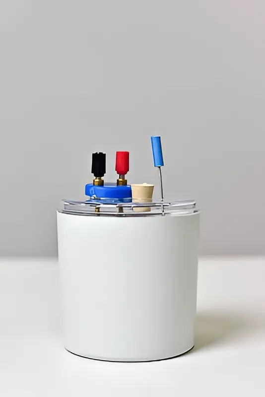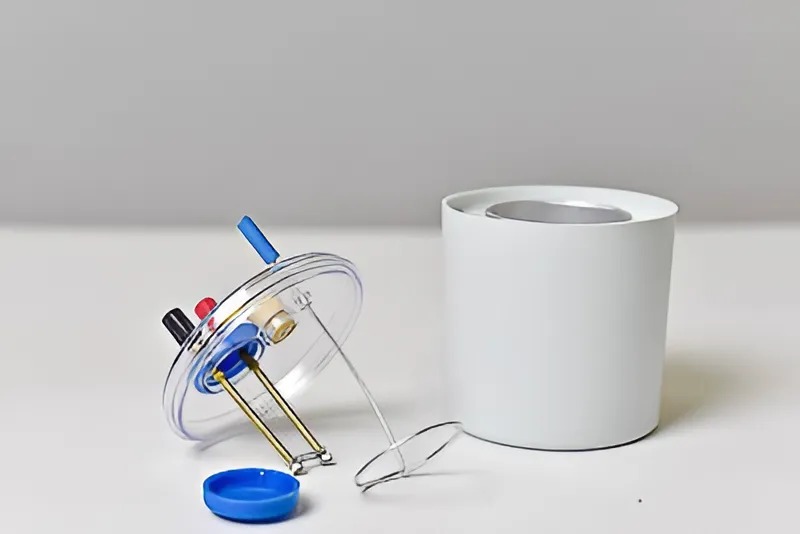 Прозрачная крышка имеет отверстия для размещения нагревательного элемента, мешалки и термометра. Съемный спиральный нагревательный элемент вмонтирован в крышку и работает от 0 до 6 В постоянного тока.