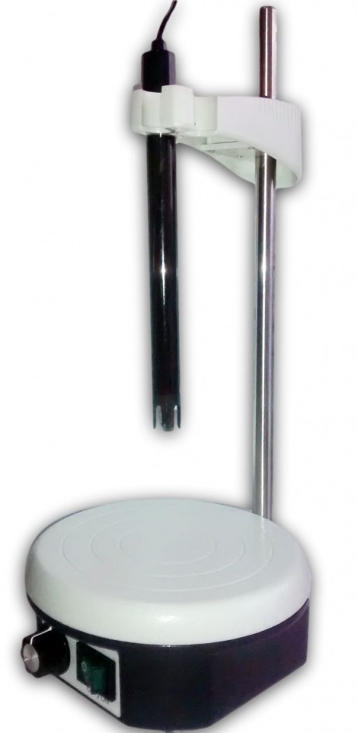 Магнитная мешалка используется в экспериментах по химии и биологии. Белая поверхность рабочего стола облегчает распознавание цвета получаемых растворов. Мешалка имеет подвижный кронштейн, который служит для закрепления щупов кондуктометра, рН-метра и термометра.