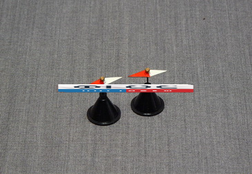 Набор представляет собой комплект из двух магнитных стрелок, каждая из которых установлена на острие отдельной подставки. Стрелки изготовлены из намагниченной стали и соответственно окрашены.