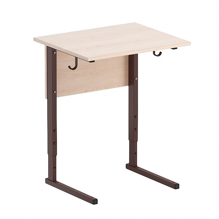 Позволяет регулировать высоту стола в зависимости от роста учащегося. Изготавливается на металлическом каркасе прямоугольного и квадратного сечения, окрашенном порошковой краской, стойкой к химическим и механическим воздействиям, на свободных концах труб установлены заглушки из ударопрочных полимеров. Столешница и передняя панель выполнены из ламинированной ДСП 16 мм, торцы столешницы облицованы кромкой ПВХ 2 мм.