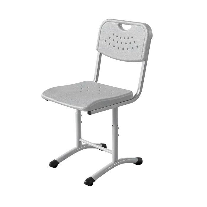 Школьный стул имеет стальной каркас, сиденье и спинку из утолщённого антивандального пластика.